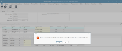 The issue quantity cannot be more than the total outstanding quantity on the request item. Do you want to correct the value?