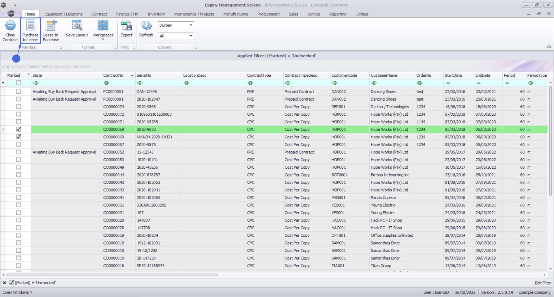 Contract Expiry - Purchase to Lease