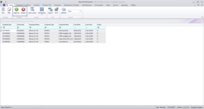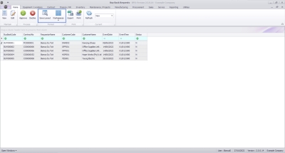 The ribbon action buttons will be available (bold) or unavailable (greyed out) depending on the status selection, and security right access level. The following functionality is available from this screen: