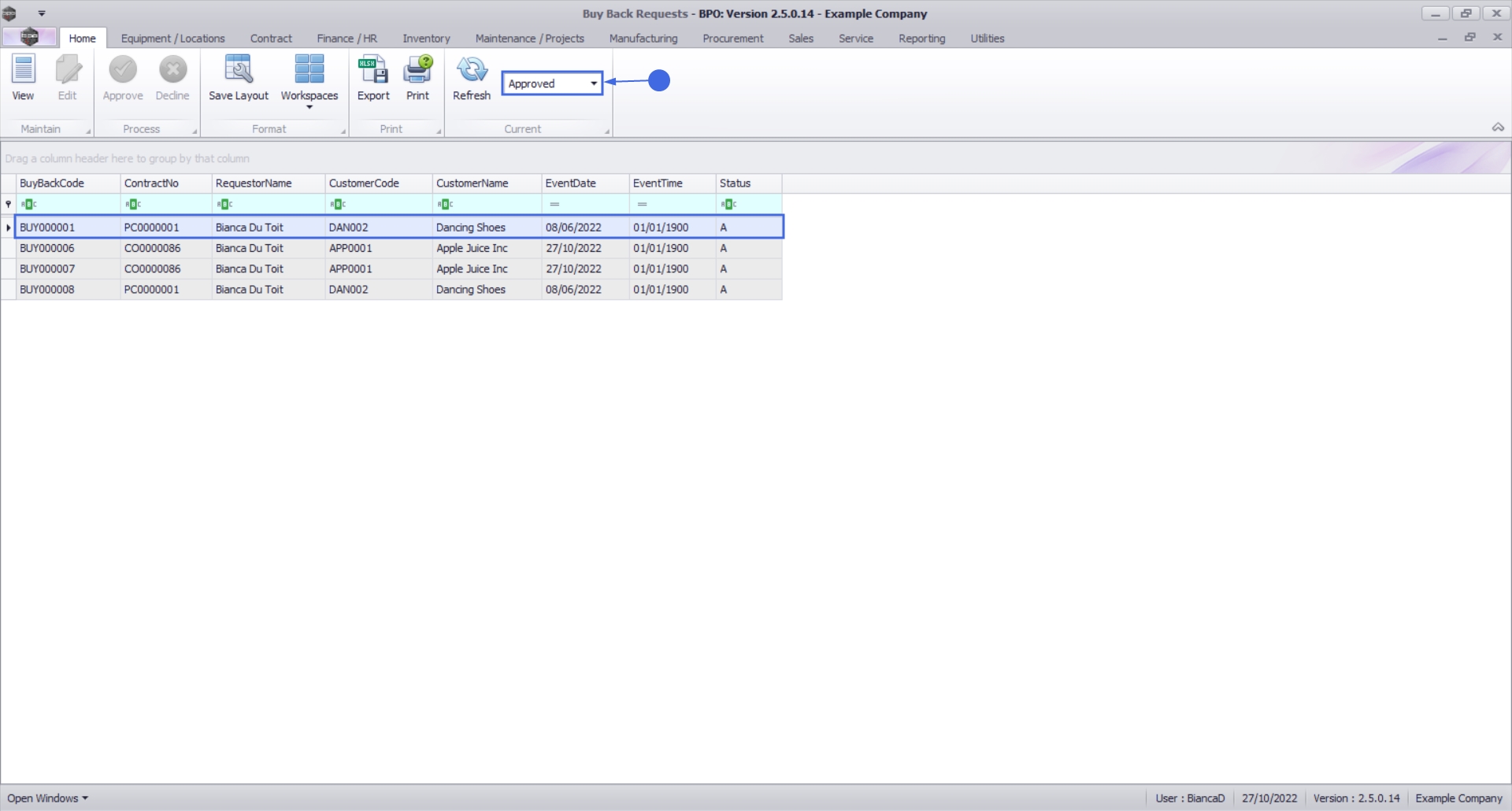 The Buy Back Request will be approved and can be found by selecting the Approved status.
