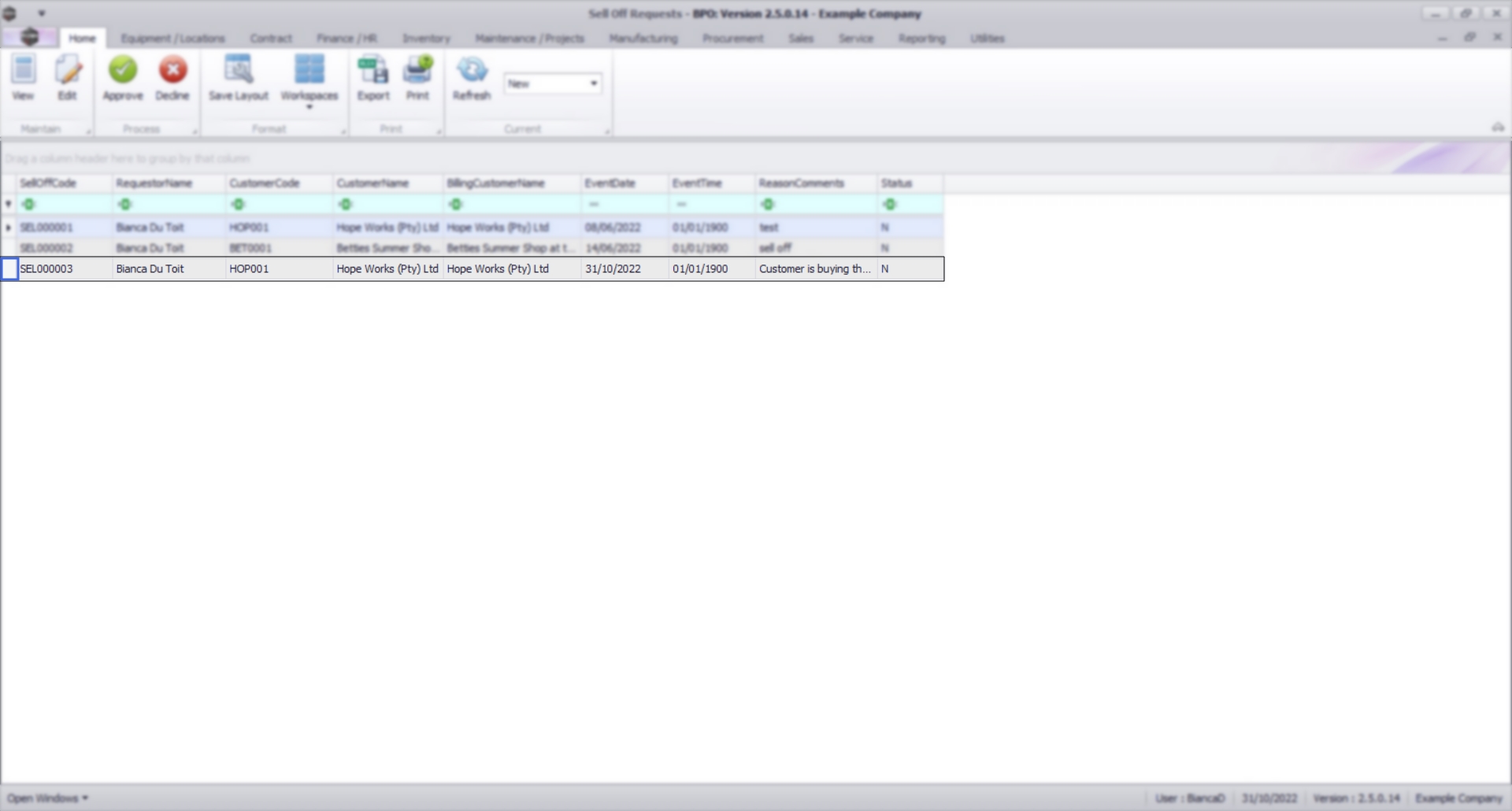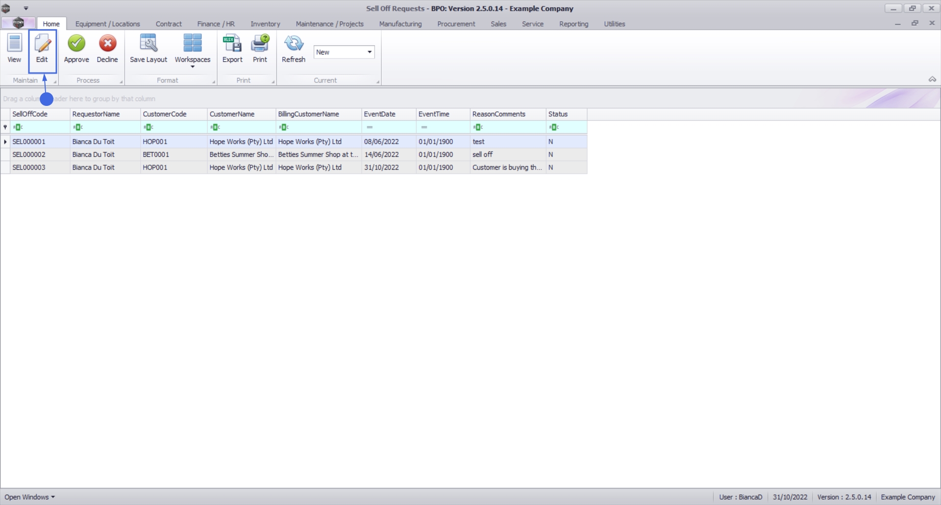 You can also remove an item, if there are multiple lines and one or more lines should not have been included in the Sell Off. Ensure you have at least one item on the request. If none of these items should be sold off, then Decline the Sell Off Request.