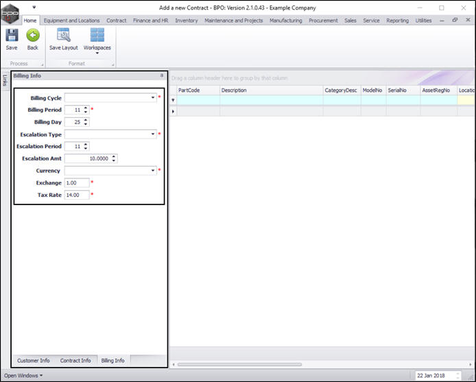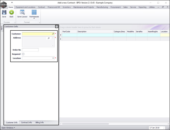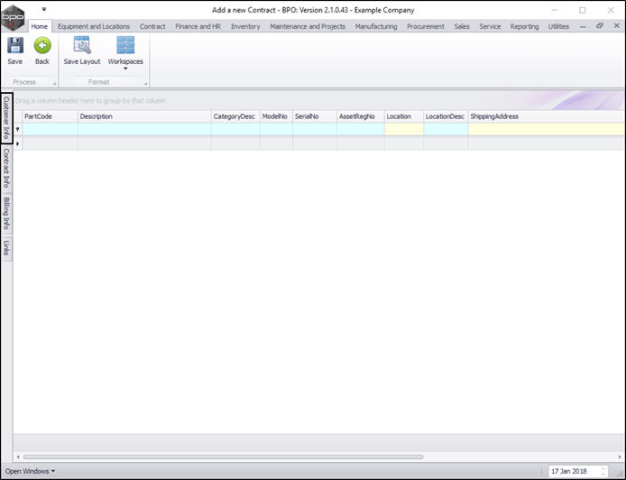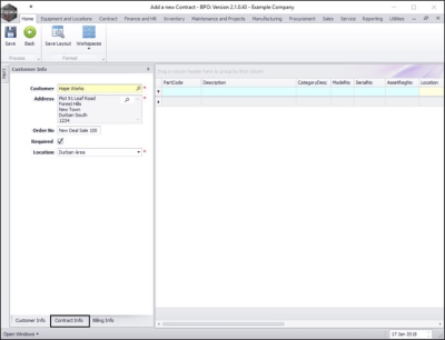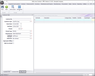 - Contract No: The contract number is generated by the system (where configured in the Contract Type set up).