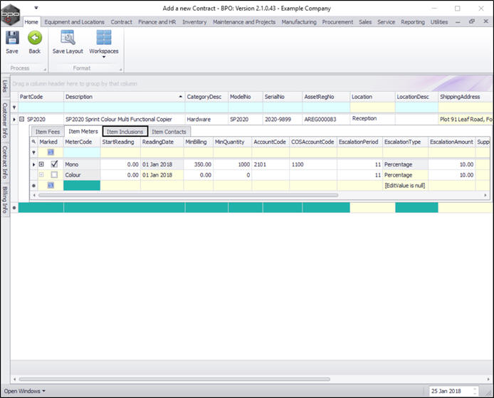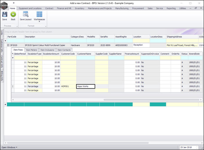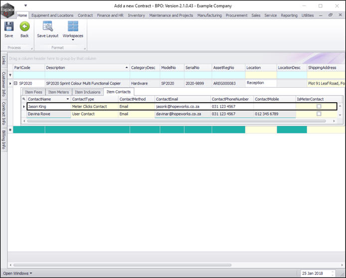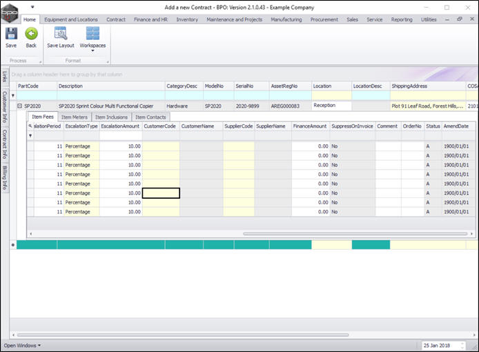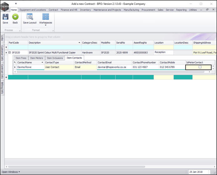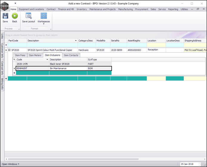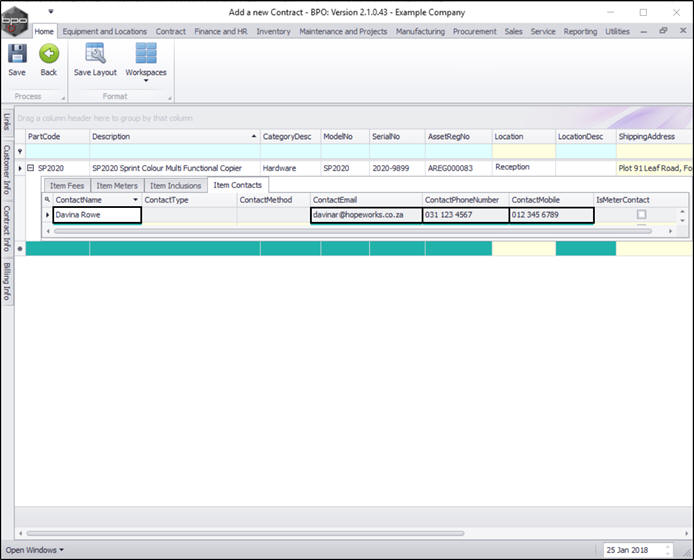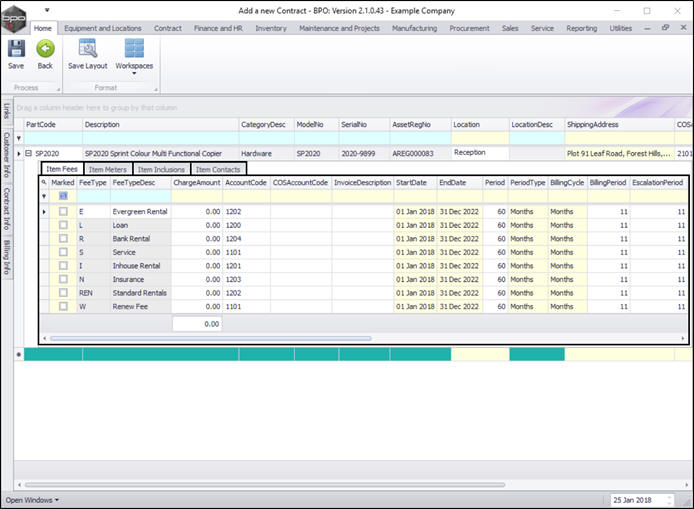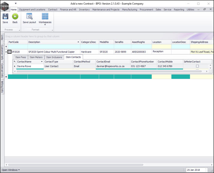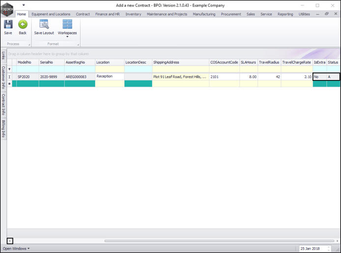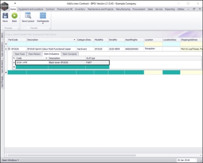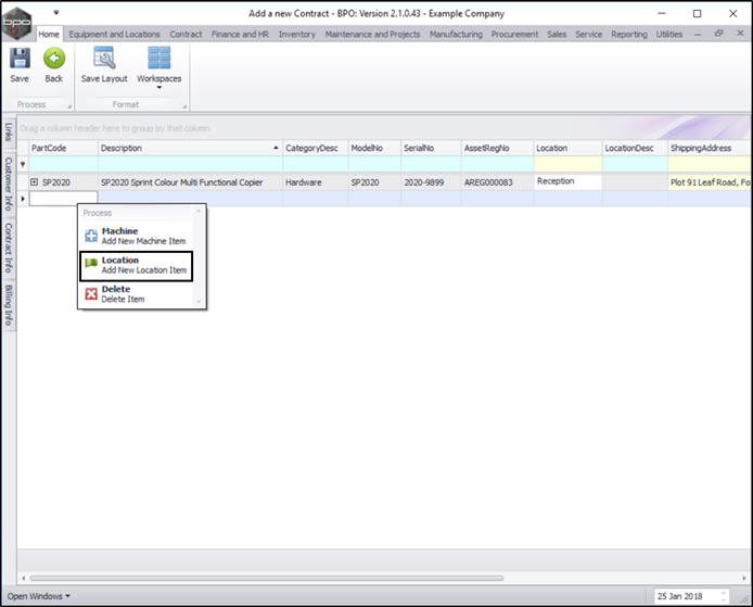 - You can continue to add contract machine items or contract location items as required, however additional items can also be added later.