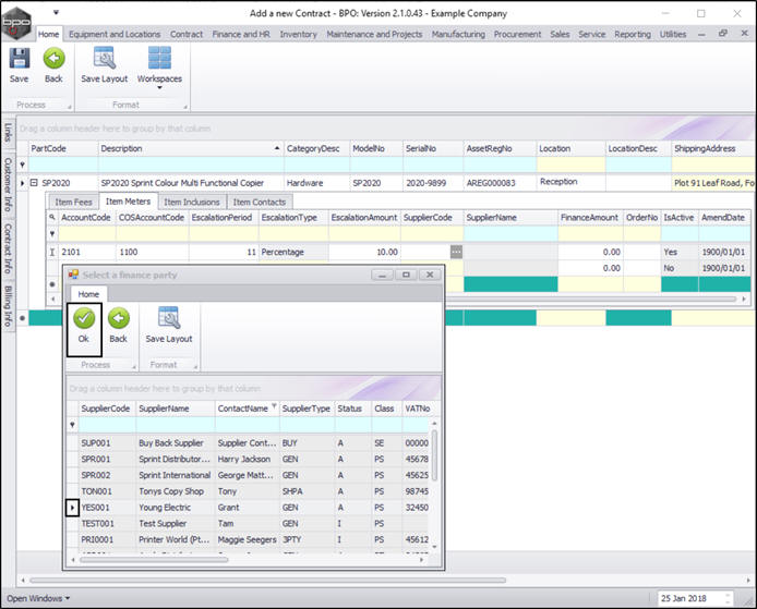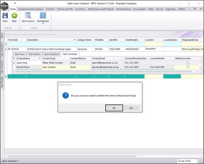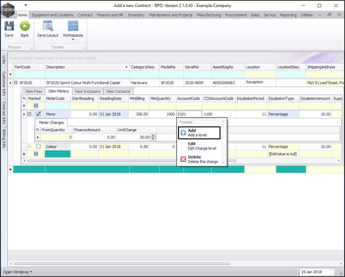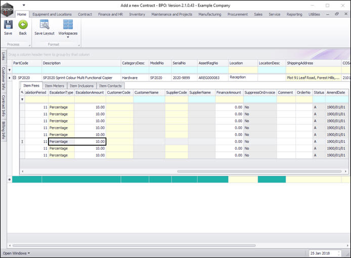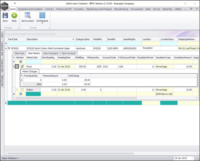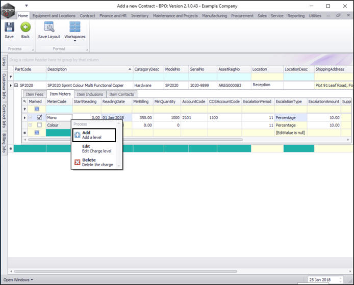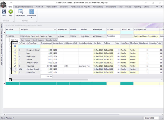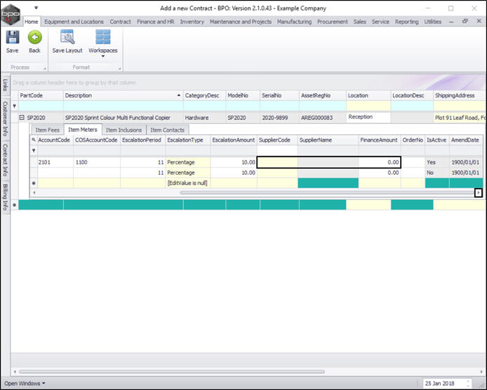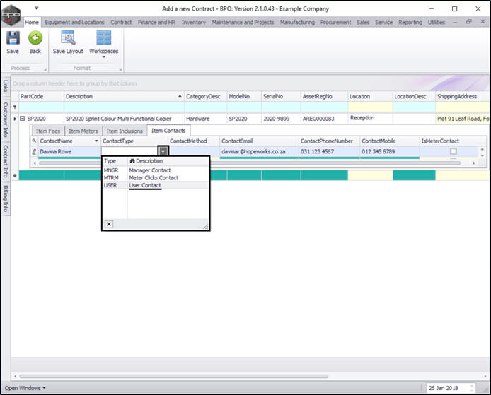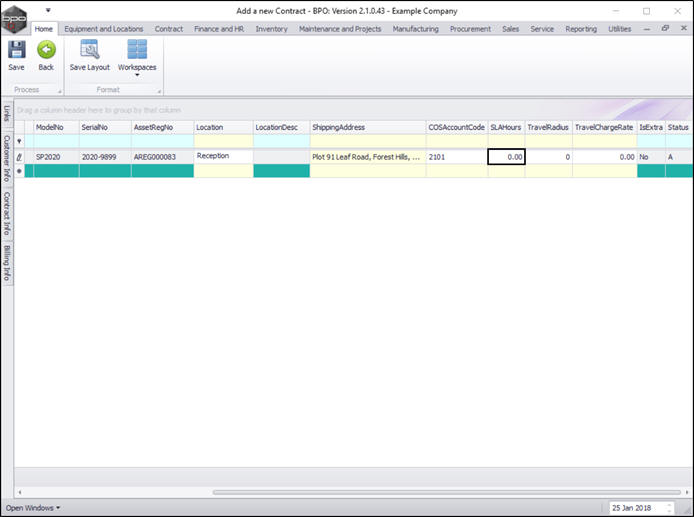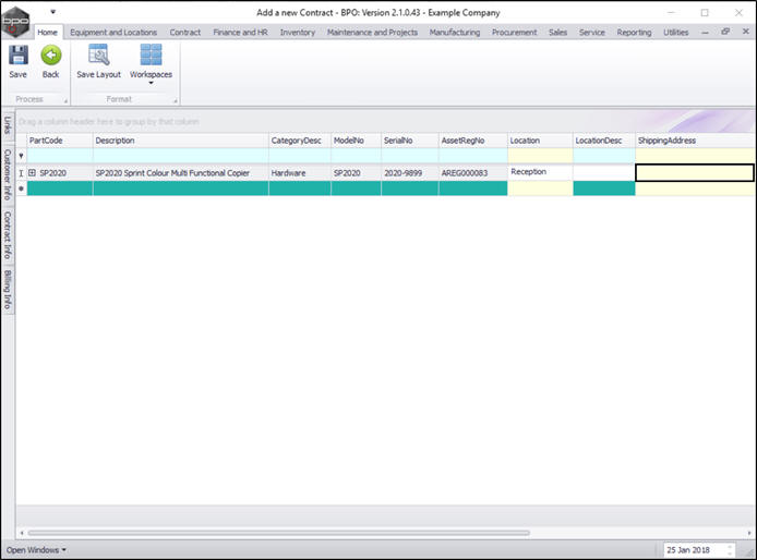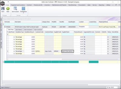 - You can continue to add contract machine items or contract location items as required, however additional items can also be added later.