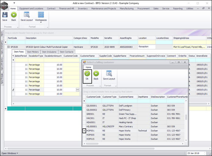 - Customer: Click on the search button and select the customer from the Select a customer for this contract pop up screen.