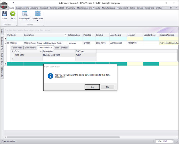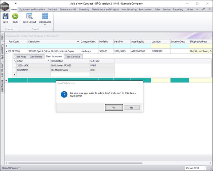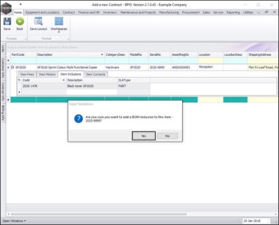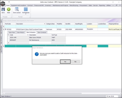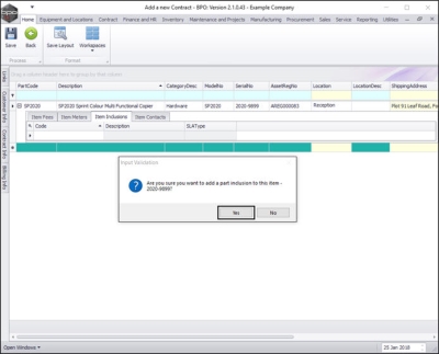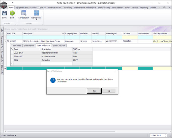 - Are you sure you want to add a Service inclusion to this item - [ ]?