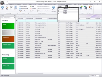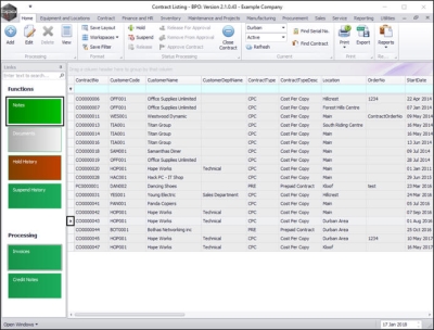 - By default, this screen will list all the Active contracts for the selected site.