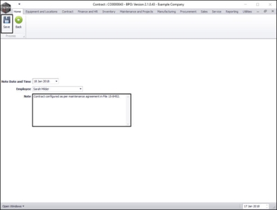 - Note has been added to Contract No: [].
