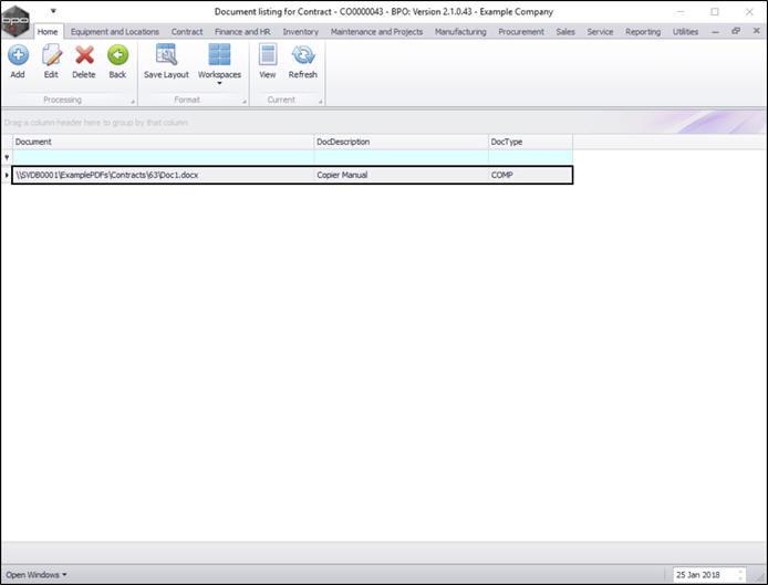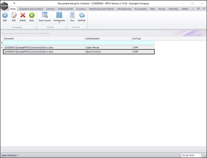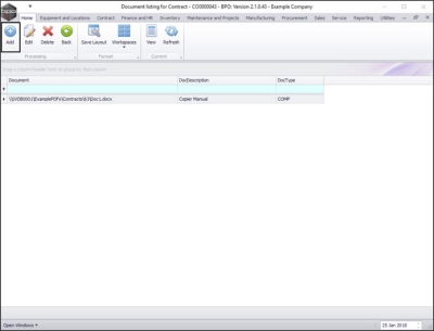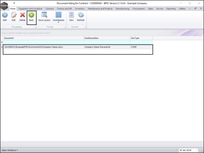 - You can now see the selected document has been added to the Document listing for Contract - [] screen.