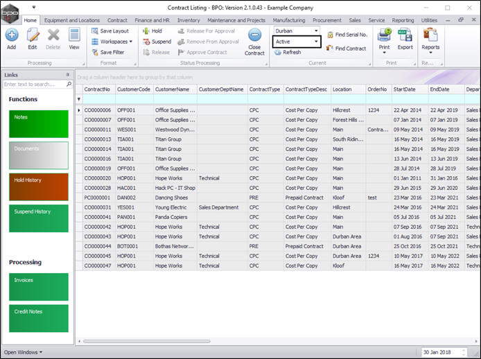 - You can now view the contract in the Contract Listing screen where the status is set to Suspend.