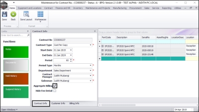 - Click on the Contract Info tab and check whether the Aggregate Billing flag is selected.