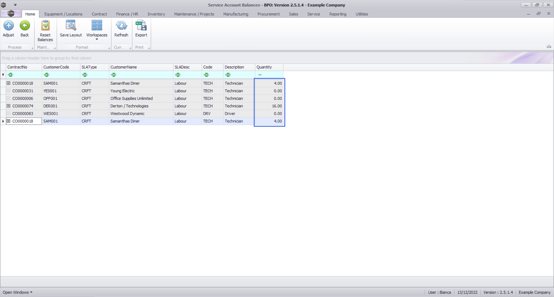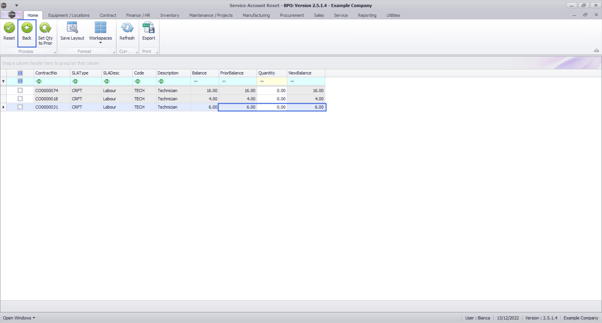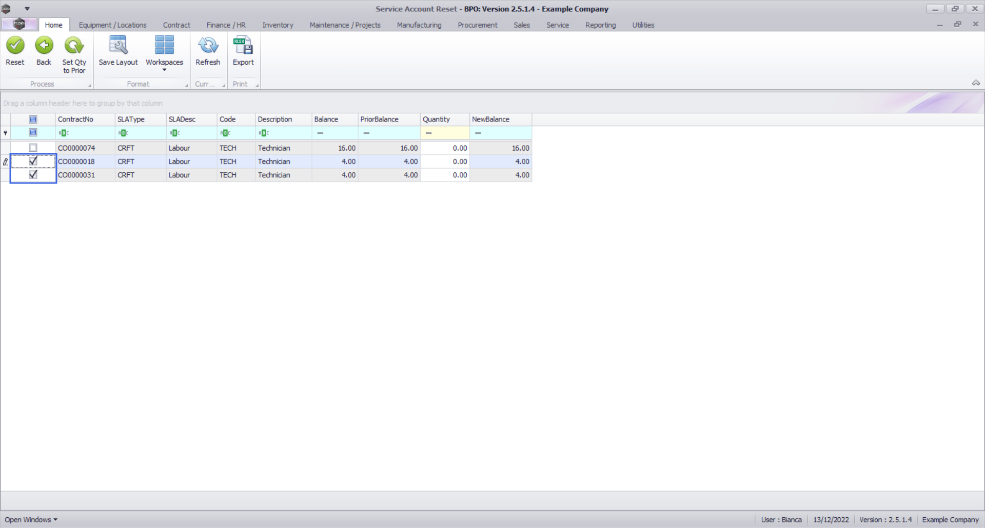 - The contract manager should then adjust each balance to match the corresponding craft inclusion quantity in the Contracts screen. It is recommended that this should be done for all balances at once.