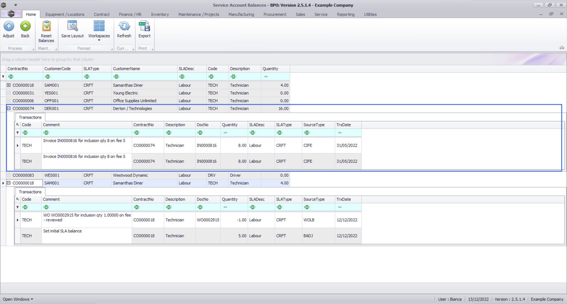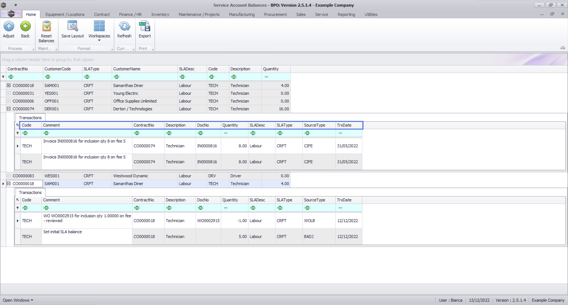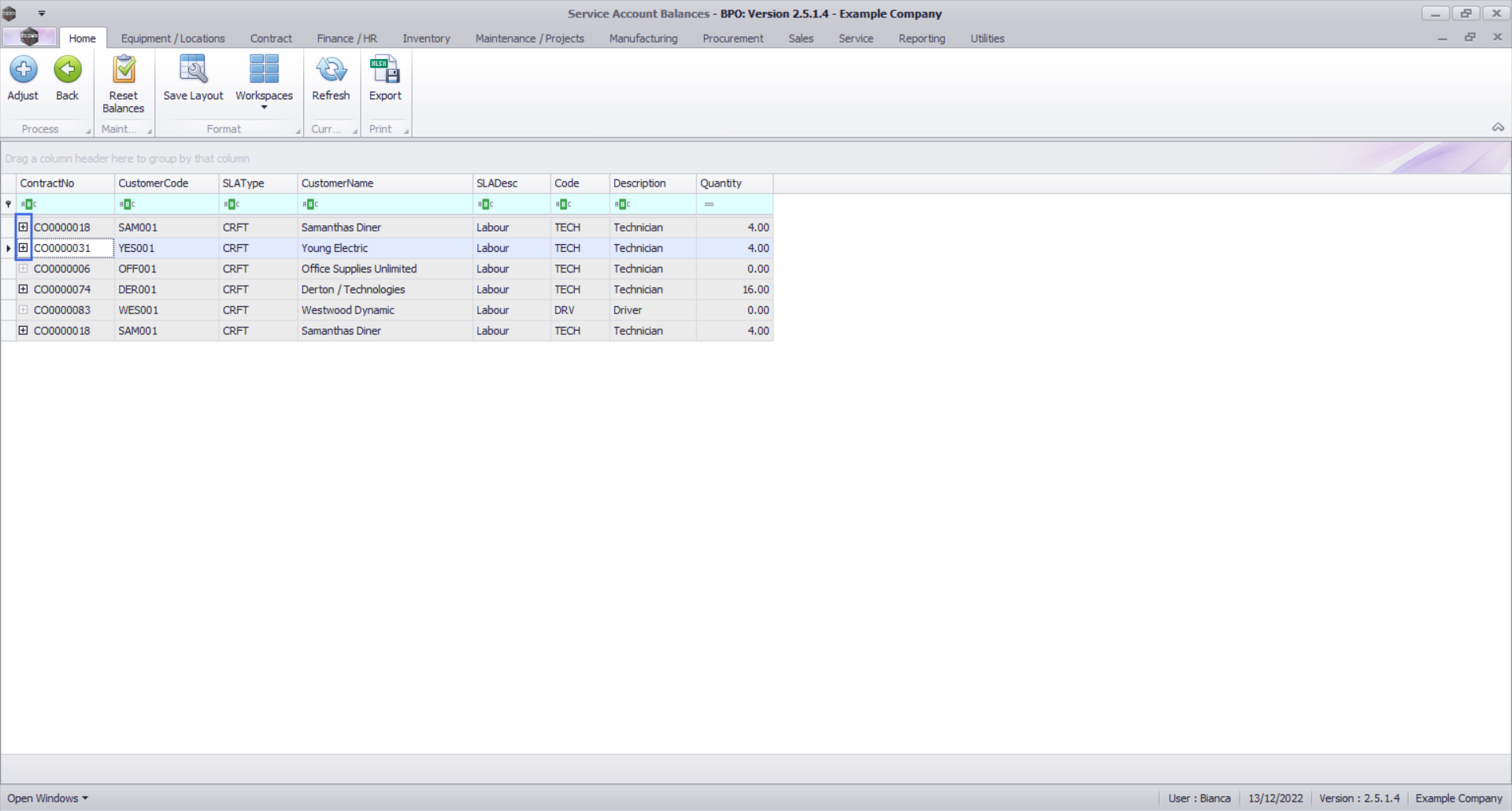 - The contract manager should then adjust each balance to match the corresponding craft inclusion quantity in the Contracts screen. It is recommended that this should be done for all balances at once.