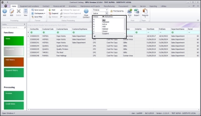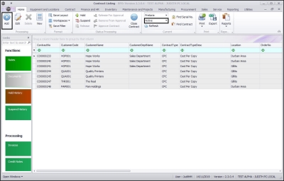 - The new contract will be saved and you will return to the Contract Listing screen where the status defaults to Active.