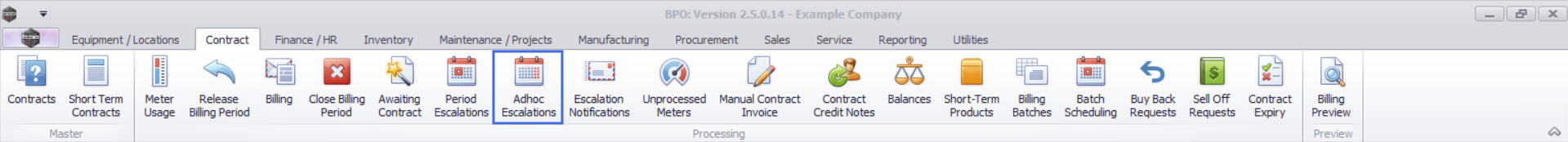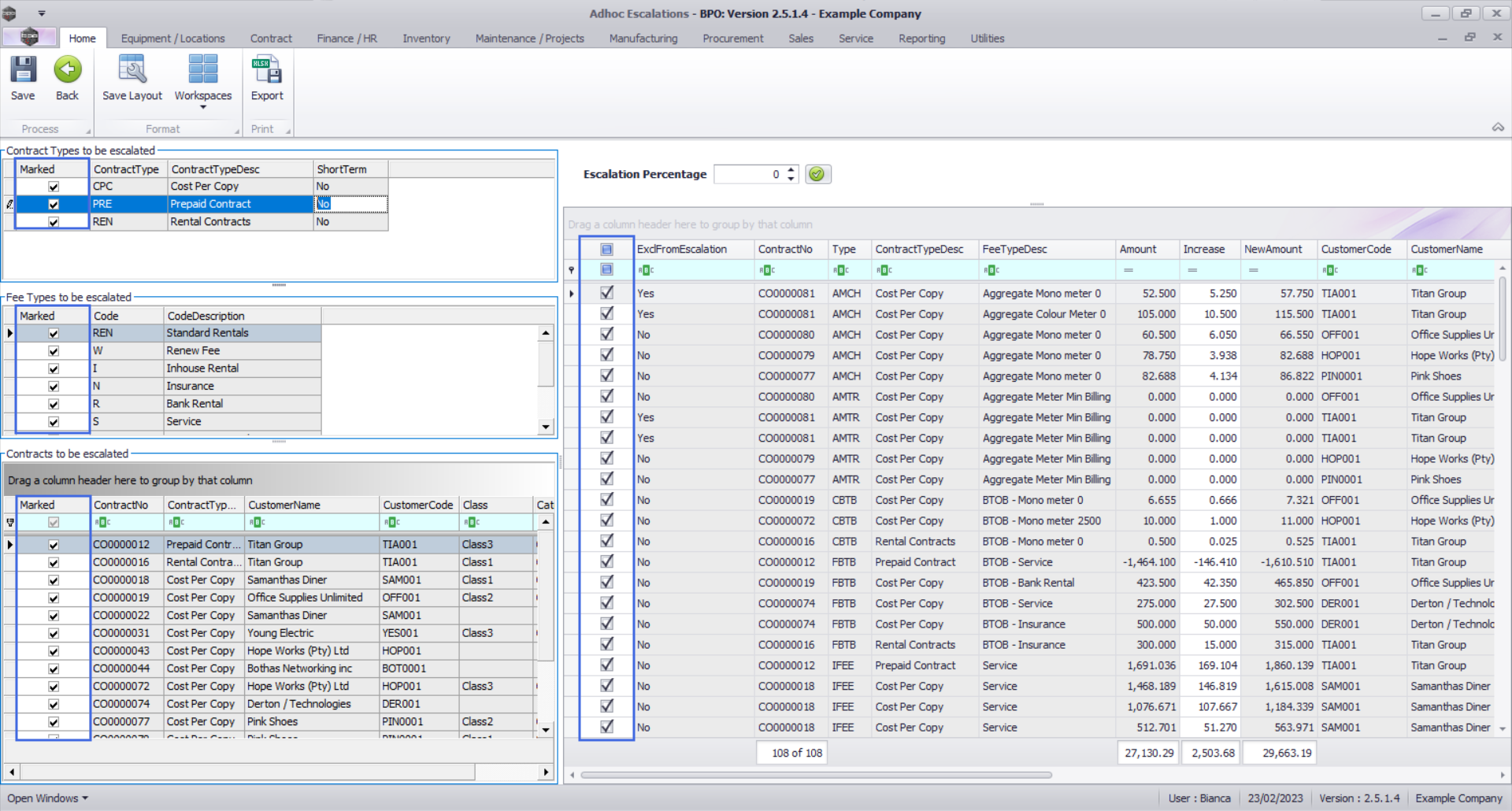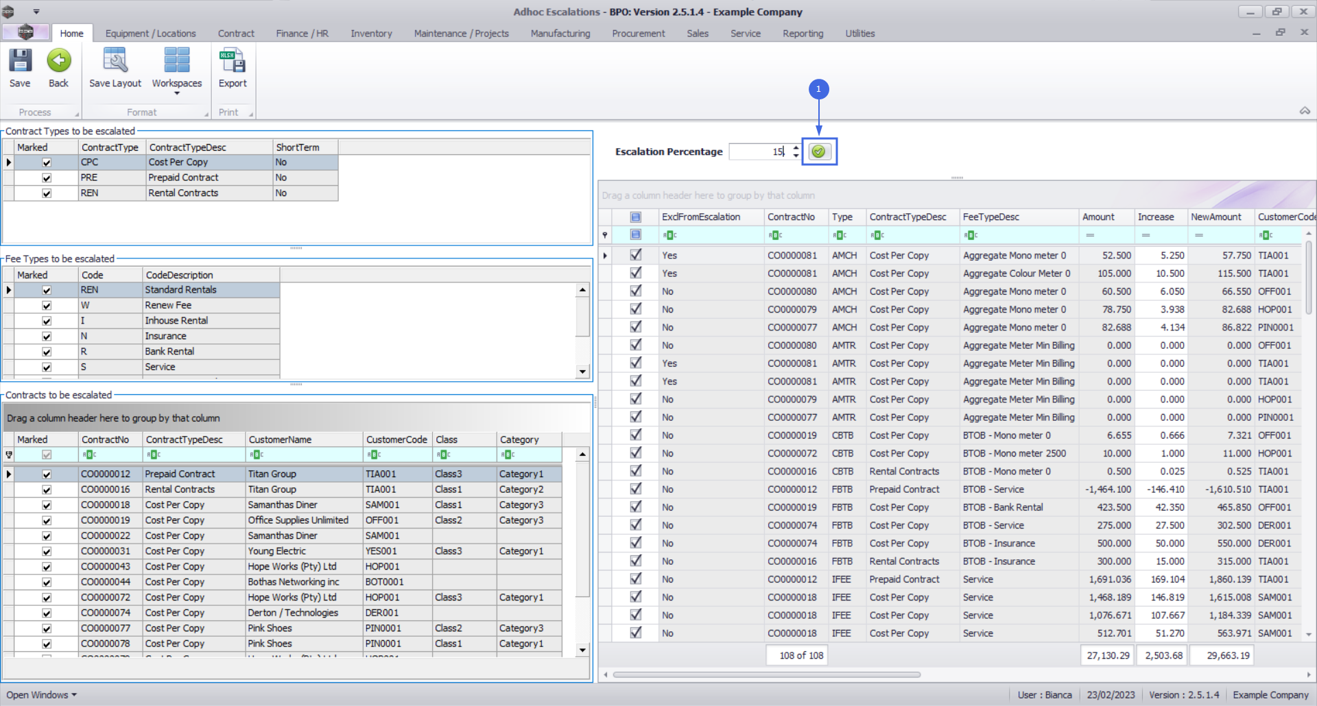 - This means that all the contract types and fees will be affected by any adhoc escalation changes that are made in this screen.