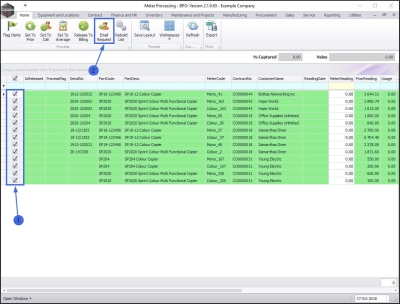 - If you wish to send a meter reading request for all of the equipment item meters then click on the 'All items' check box in the column header row.