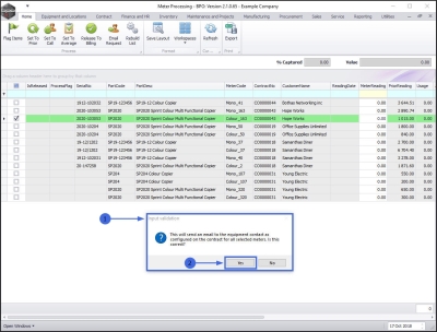 - This will send an email to the equipment contact as configured on the contract for all selected meters. Is this correct?