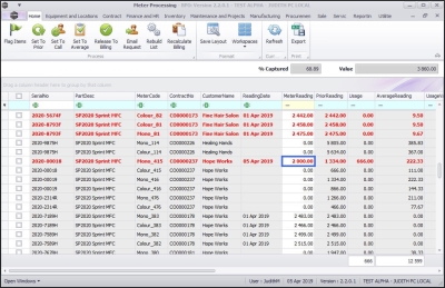 If you go to the last Call logged against the selected serial number, you can see that the captured meter reading in the Call Maintenance screen is the same as the updated meter reading in the Meter Processing screen.