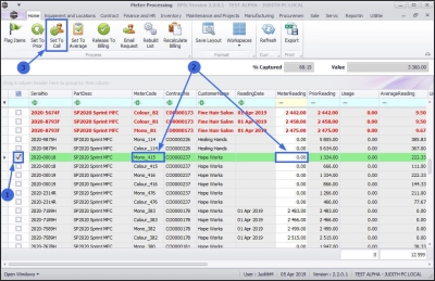 - In this example, the Mono meter reading of the selected serial number is 0.