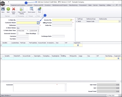 - The Contract Credit Notes screen will be displayed.