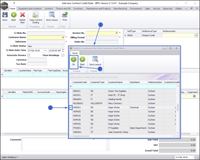 - The Select a customer for this Contract Credit Note pop up screen will appear.