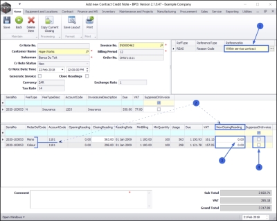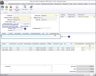 - Note: This is useful, for example, if there are several lines of meter readings linked to the invoice and only one needs to be changed for the purpose of the credit note being created. The system will populate all the meter rows then you can search and edit manually, the one reading that was captured incorrectly.