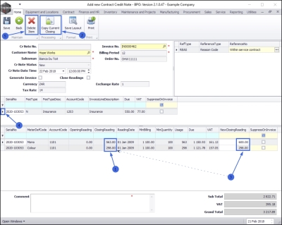 - If there are any meters linked to the selected invoice to be credited, then you can manually edit the closing reading. You may wish to do this if, for example, the closing reading on the original invoice was recorded incorrectly