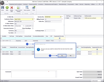 - Are you sure you want to remove this fee line from the credit note?