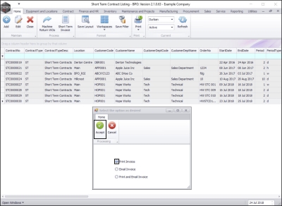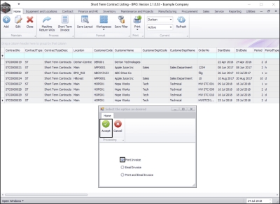 - The email will be sent via the BPO Email Service on the server and you will return to the Short Term Contract Listing screen.