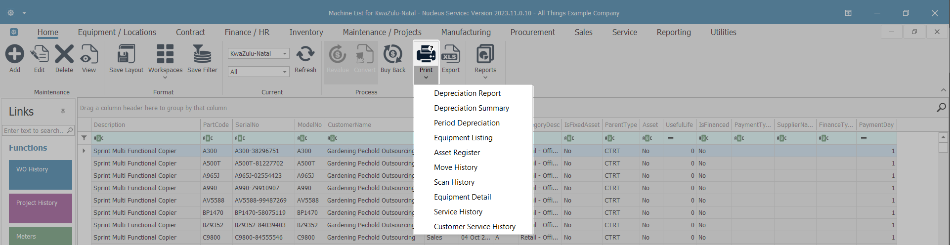 - Client Machines: View serialised items that belong to customers.