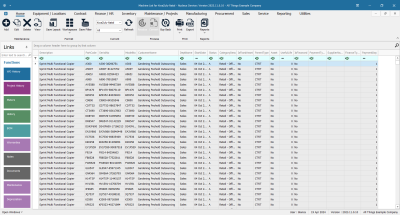 On the left side of the Machine List for [] screen is the Links panel which contains the Asset Functions and Processing tiles. Each tile, when clicked on, will take you to further information concerning the selected asset.