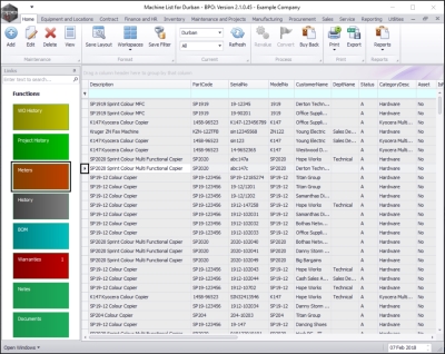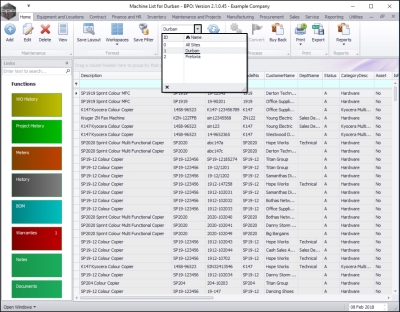 - The screen will open with the default Site setting configured on the user and the Equipment Type filter set to 'All' (machines).