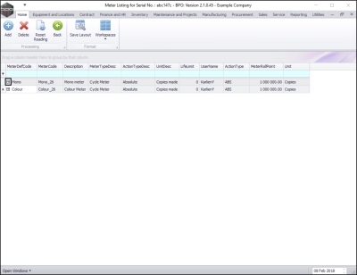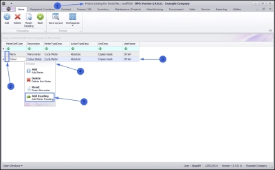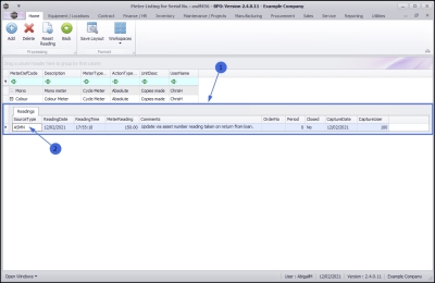 - Select the row of the serialised item where you wish to view the meter reading.