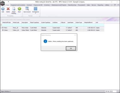 In BPO, you have the ability to update the machines meter reading manually: