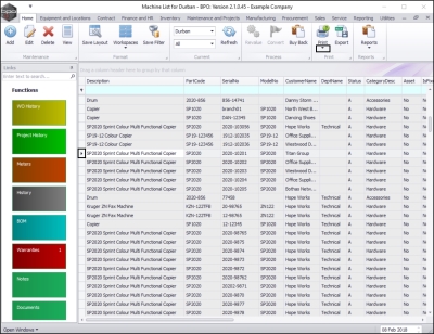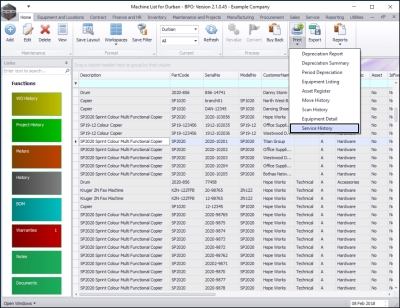 - Select the row of the serialised item where you wish to view the Service History Report.