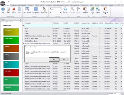 - Do you want to print the service history report for the equipment []?