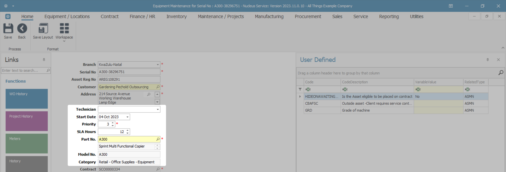 - These are assets that have been issued to a work order. If the item is a serialised stock item, the item must be invoiced to the customer. If the item is an internal asset, the item can be linked to the contract.