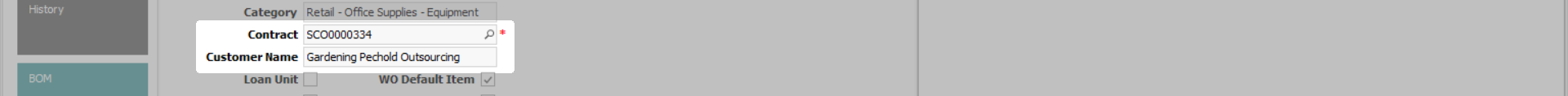 - Contract and Customer Name: These fields will only be displayed if the item is currently attached to a Contract. The Parent Type of the item is CTRT.