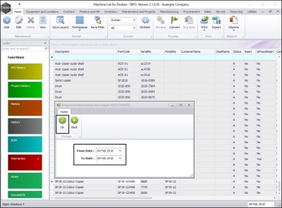 The screen will open with the default Site setting configured on the user and the Equipment Type filter set to 'All' (machines).
