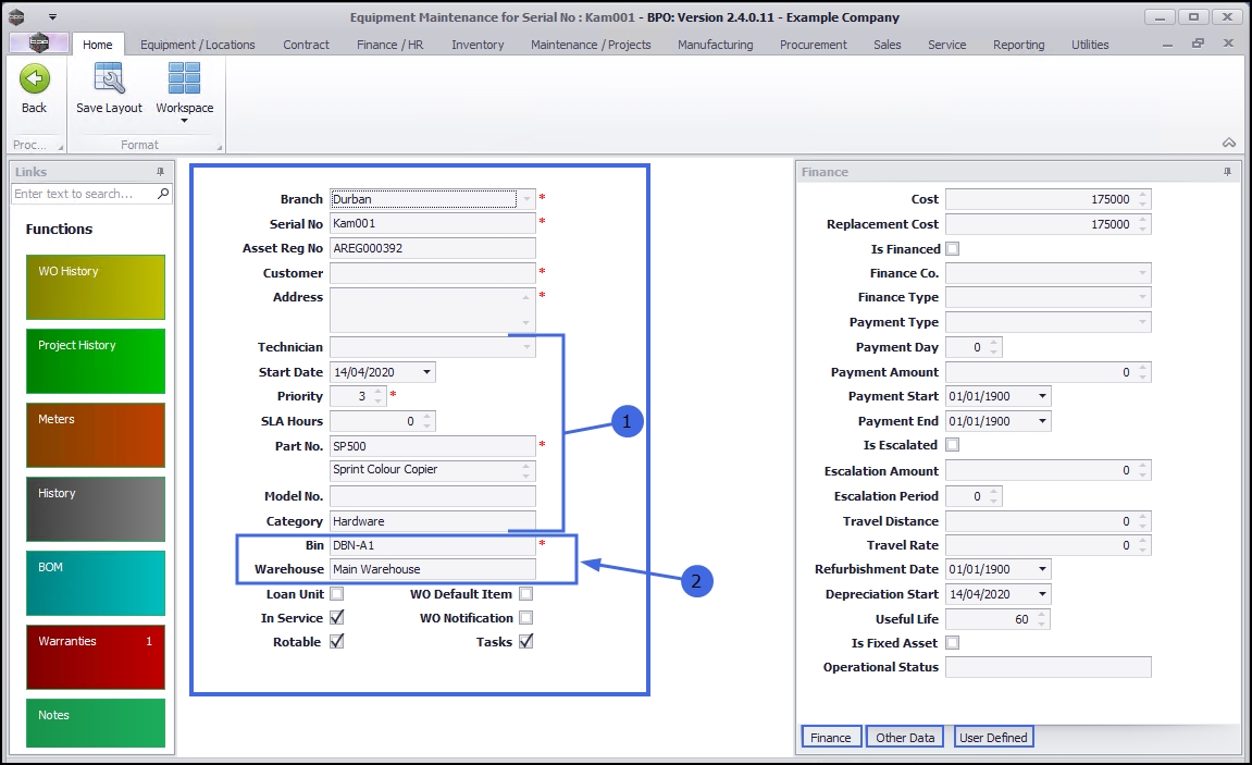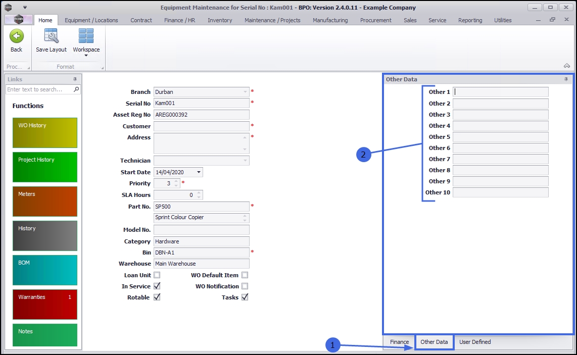 At present, these fields in the Equipment - Assets module can be used to add extra information relevant to the selected asset.