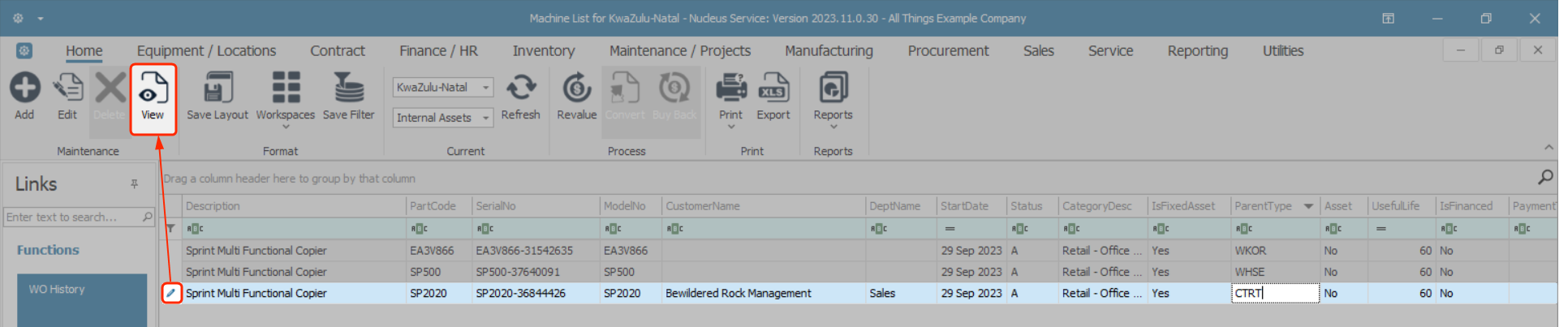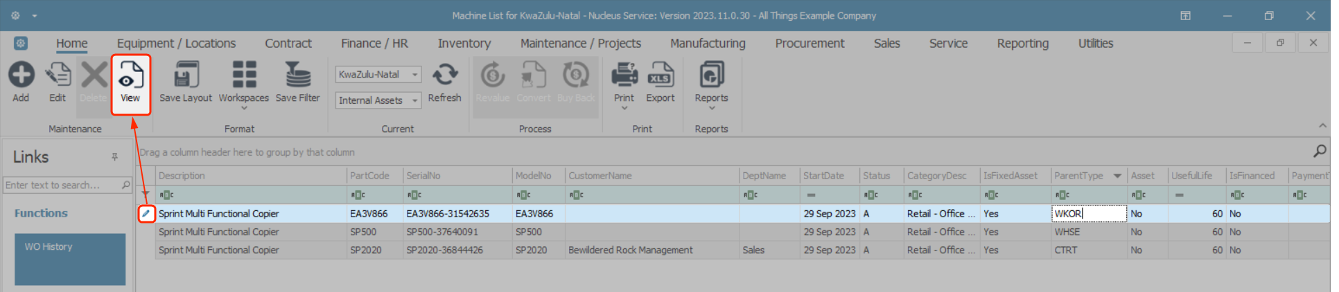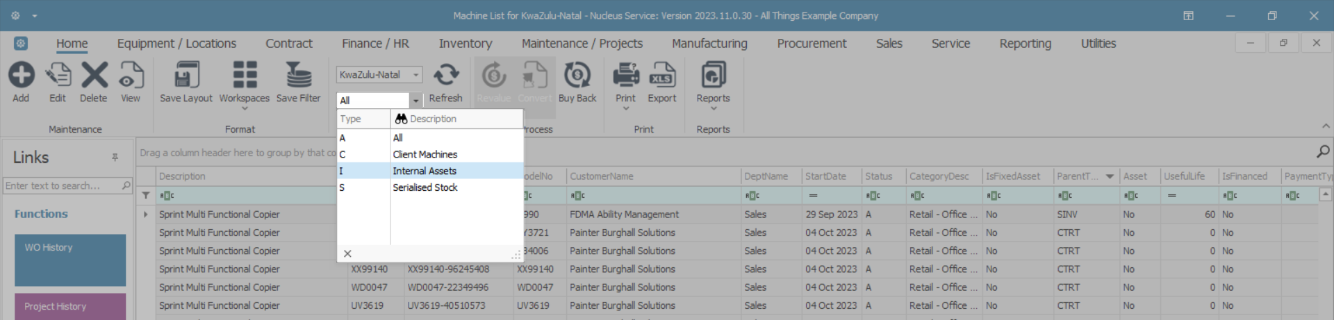 An asset is an item that is generating income for the company e.g. a rental item or an item that has been sold to a customer. Listing screen (Machine List for [ ] screen) allows you to view more details with regards to a selected asset.