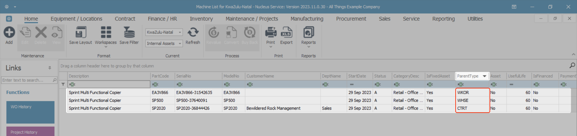 - Take note of the Parent Type of this asset. In this example, it is: WKOR - Work Order.