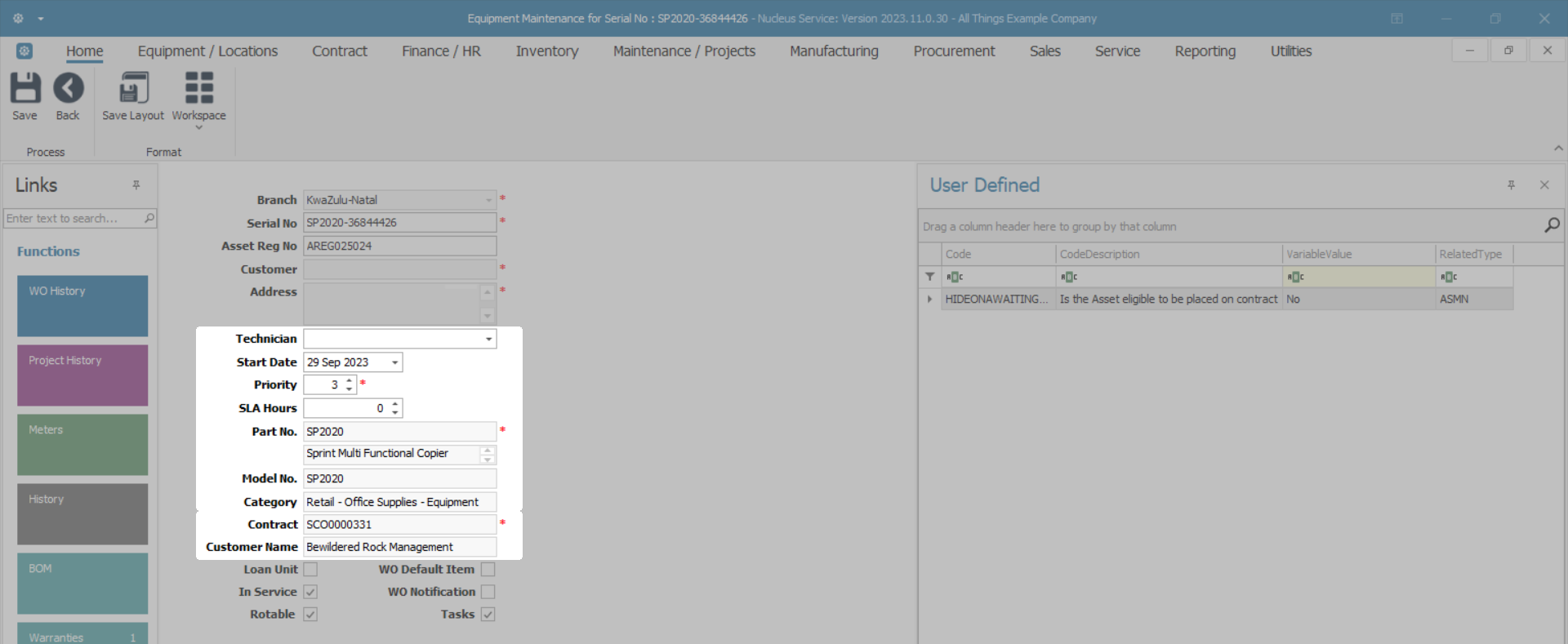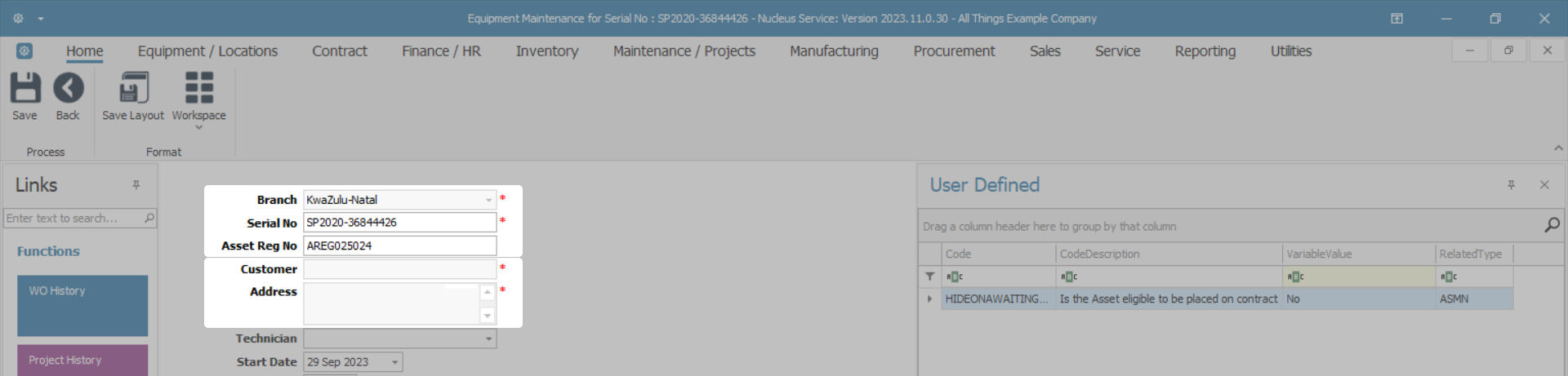 - For example, this internal asset might be out on loan to a customer whilst the customer machine is being repaired - the asset cannot be linked to the internal asset bin and warehouse fields or the contract no and customer name fields as this is a temporary loan machine.