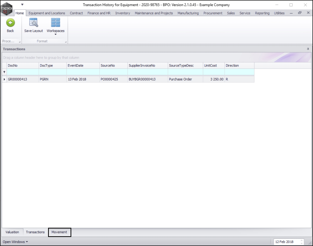 - Now you can view the Movement History for this item.
