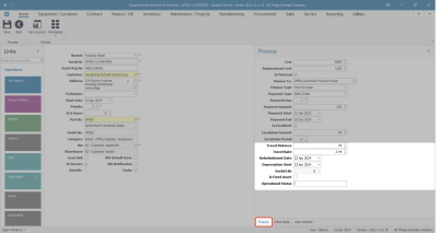 Assets - Add - Finance Details