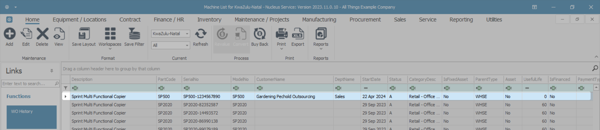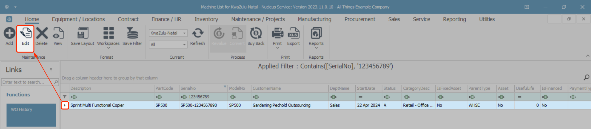 - The Equipment Maintenance for Serial no: [] screen will open.