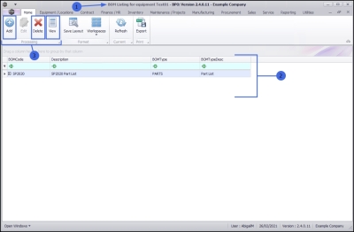- In the BOM Listing for equipment [ ] screen,