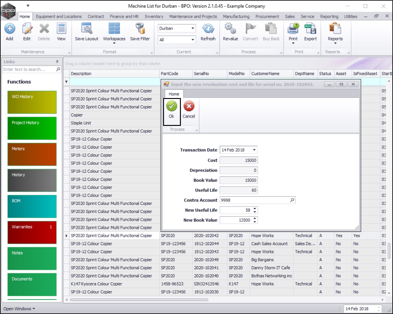 - When you have edited the New Useful Life and New Book Value, click on Ok.
