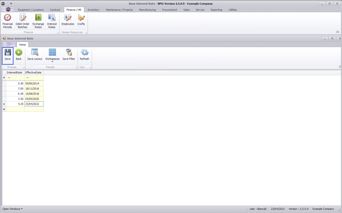 - When you have finished adding the new interest rate and effective date, click on the Save button.