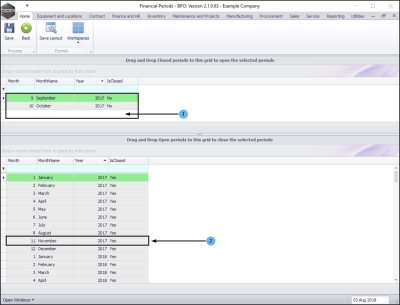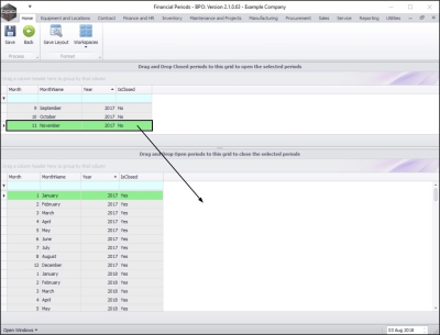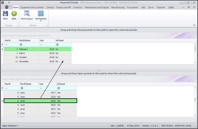 - Drag and drop this row in the Closed Periods data grid.
